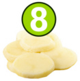 pommes de terre coupées en lamelles, en cubes ou en demi-lunes,
